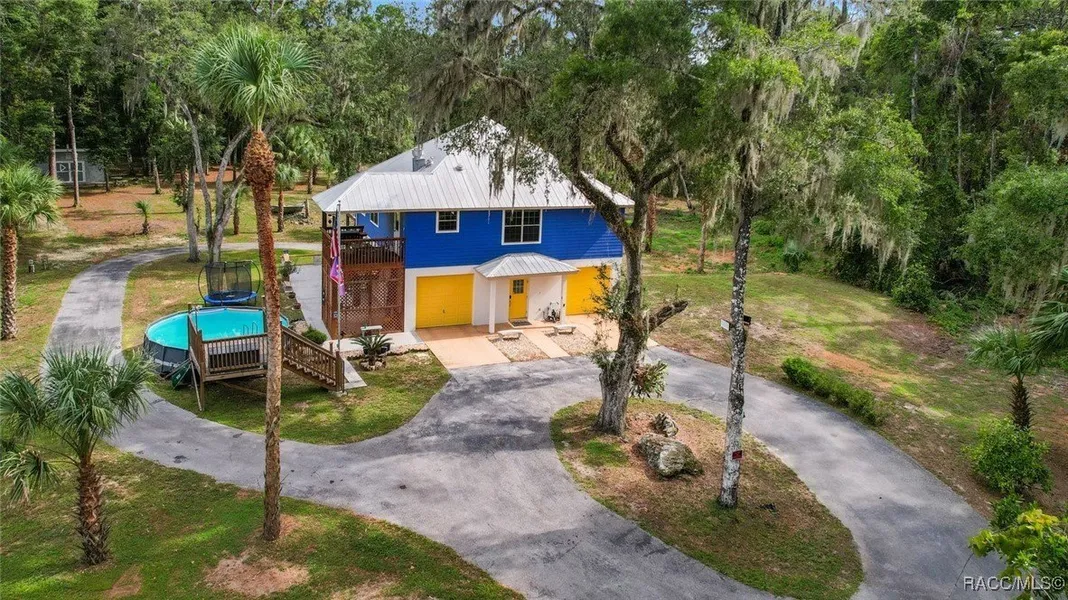MOTIVATED SELLER - BRING ALL OFFERS!! Don't miss this rare opportunity to own a private retreat just minutes from downtown Crystal River. Tucked away at the end of a 350+ foot winding, tree-lined driveway with concrete columns and a custom mailbox, this home offers complete seclusion and stunning natural surroundings, including regular visits from deer and turkey. The property includes an above-ground pool with a gated deck, a spacious 16x36 two-story rear balcony, a 10x10 covered side deck with lighting and fan, and full-property LED stadium lights that brighten the entire yard at night. Outdoor features also include a shooting berm with 8x8 weather shelter, a chicken coop for six, and a concrete perimeter pad that offers extensive parking for guests and events. The home has two garages-one is a drive-thru two-car garage, ideal for boats and trailers. The second garage also features fro...