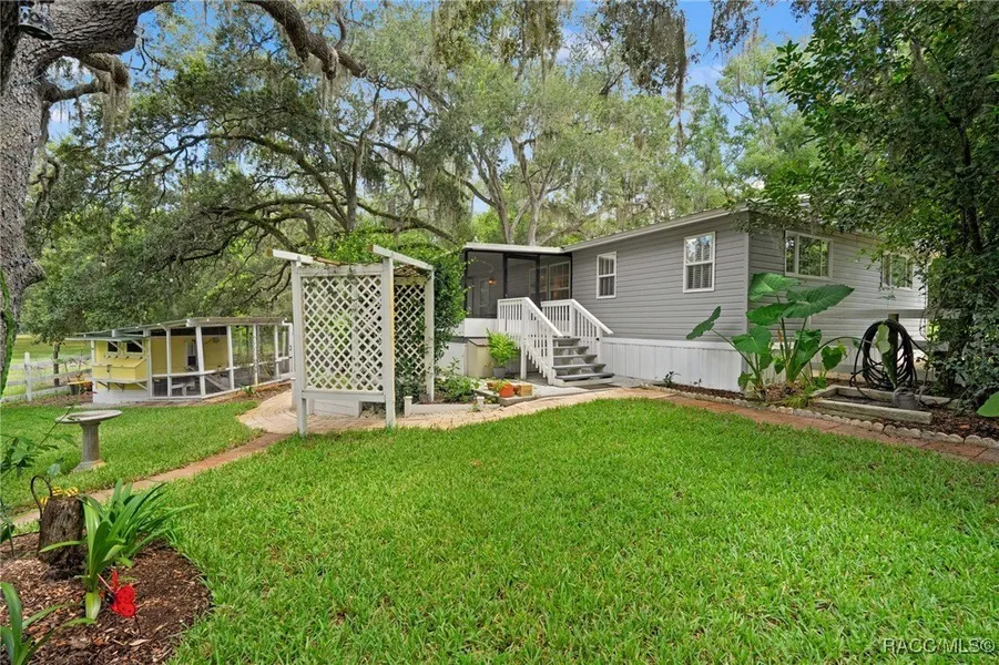 Available Again - No Fault of the Home - Tucked away on just over 4.5 acres of peaceful, park-like land, this fully renovated 2-bedroom, 2-bath retreat blends modern comfort with the charm of a true homestead. Backing directly to 132 acres of Central Ridge Park and only steps from the 46-mile Withlacoochee State Trail, it's the perfect setting for those who love the outdoors, dream of hobby farming, or simply crave a slower pace of life. Inside, the home feels brand new thanks to a top-to-bottom renovation - from the plumbing, electrical, insulation, and drywall to the custom finishes that add warmth and character. The kitchen is designed for both function and hospitality, featuring GE Profile appliances, a GE Monogram double oven, custom cabinetry, and a spacious wood-top island with clever storage touches like a built-in knife drawer. A walk-in pantry, cozy electric fireplace with a live-edge mantle, and even surround sound over the soaker tub make every day feel like a treat. Step outside and the property comes alive with endless possibilities. A 20x40 irrigated and fenced organic garden is ready for your vegetables and herbs, while the chicken suite with cameras and an automatic electric door makes tending to your flock a breeze. Towering granddaddy oaks and fruit trees provide shade and beauty, while the above-ground pool with turf surround and a screened-in outdoor hangout area offer the perfect place to relax any day of the week. For projects, storage, or future plans, you'll appreciate the 16x32 shed with water and electric, RV/boat slab, barn or storage slab. An electric gated entry adds both privacy and convenience. The innovative ProVista lawn keeps the grounds looking lush with minimal effort, thanks to built-in weed control. With room for an additional homesite, the possibilities here are endless. Whether you're dreaming of a thriving garden, collecting fresh eggs each morning, entertaining friends under the stars, or simply soaking up the peace of Florida's natural beauty, this homestead offers a lifestyle that's both laid-back and deeply rewarding - all delivered in style. FURNISHINGS OPTIONAL.