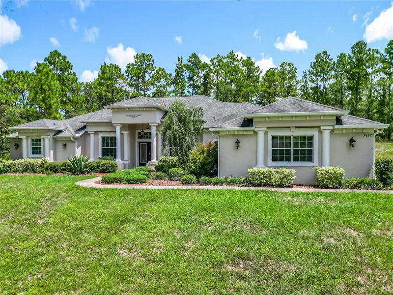 ***5.64 Acres*** Built in 2017, This beautiful 3Br/3Bth has over 3000 sq. ft. Split floor plan. NO HOA!! in PINE RIDGE FARMS community. Tile throughout except Brs... Gourmet KITCHENAID appliances in kitchen with Island. Granite countertops and walkin Pantry. Oven and Fireplace are (LP gas appliances). The Living room boasts beautiful high ceilings with crown molding and double tray detail. Enjoy the warmth of your fireplace (LP gas) on cooler evenings (remote controlled). Step out to the heated SALT water swimming pool and spa. Screened and a BRAND NEW PENTAIR CHLORINATOR smart pool pump system. Enjoy the outdoor summer kitchen on pavers with BBQ and refrigerator. The split floorpan offers 2 BRs with pocket door privacy for guest as it has a separate entrance with kitchenette in 3rd BR... Shower and tub. 50 amp RV hookup on the outside. TRANE 5 ton AC system. Plenty of room on expanded driveway. The Primary suite has a huge walk in closet... separate tub and shower and dual vanities. Access to the pool. Conveniently located close to restaurants... shopping and major roads. This home is on a quiet Cul-de-sac. Enjoy all that FLA has to offer. Come see it TODAY!!