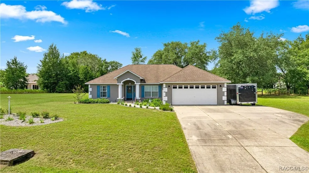 Welcome to your charming and modern sanctuary! This beautifully updated 3-bedroom, 2-bathroom home sits on a spacious 1.03-acre corner lot in the desirable Pine Ridge community, the largest equestrian center in Citrus County. Step inside to a bright, open floor plan with vaulted ceilings and new LVP flooring throughout. The kitchen is ideal for cooking, featuring tile floors, ample cabinetry, a LG ThinQ refrigerator, a glass top stove, and an ice ball maker. A dedicated office space with high-speed internet is perfect for remote work. The split floor plan offers privacy, with a tranquil primary suite featuring a king-sized bedroom, walk-in closets, a soaking tub, and a large walk-in shower. Outside, the large, gated backyard has plenty of room for your boat or toys, a central shade tree, and space to add a pool or workshop. Recent upgrades include a newly painted exterior, a fresh gray epoxy garage floor, and a serviced septic system. Nestled in the rolling hills of Florida's Nature Coast, Pine Ridge Estates offers a lifestyle of outdoor enjoyment and convenience. The community boasts approximately 50 miles of equestrian trails, a well-appointed community center with daily activities, tennis courts, horseshoe pits, and a playground. This home is perfectly positioned for adventure, just minutes from some of Florida's best outdoor activities, including swimming with manatees in Crystal River, kayaking down Rainbow Springs, and numerous hiking and birding trails. You're also conveniently located just 1.5 hours from Tampa, less than 2 hours to Orlando, and only 45 minutes from downtown Ocala or the World Equestrian Center. This is more than a home; it's a gateway to an active Florida lifestyle!