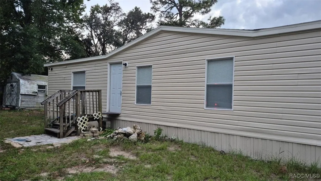 Nestled on over an acre of land in the peaceful Green Acres community of Homosassa, Florida, this 3-bedroom, 2-bathroom manufactured home offers 1,404 square feet of comfortable living space. Built in 1990, the home features a wood exterior, a composition roof, and sits on a spacious, wooded lot, providing ample privacy and room to expand or enjoy outdoor living. Inside, the layout includes a generous living area, a split bedroom plan, and forced air heating for year-round comfort. While some updates may be desired, the home presents a great opportunity for customization or investment. Conveniently located near Rock Crusher Elementary and just a short drive from Crystal River's middle and high schools, this property combines rural charm with access to local amenities. Whether you're looking for a primary residence, seasonal retreat, or income-producing property, this home offers excellent value in a growing area of Citrus County.