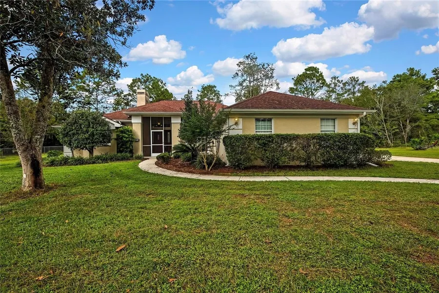 One or more photo(s) has been virtually staged. HONEY STOP THE CAR!!! Buyer financing fell though, Seller to provide NEW ROOF before closing at full price. TALK ABOUT BANG FOR YOUR BUCK, Huge Lot, Mature Landscaping, Pool, Spa, Outdoor Kitchen, Fireplace, Fenced. THIS ONE REALLY CHECKS THE BOXES and is in a highly sought after Pine Ridge. As you pull up, you’ll notice the curb appeal right away. A picturesque Mature landscape and Majestic Oak trees that line the front of the property. The house is set back in a slightly elevated 1.20-acre lot, providing ample room for recreational vehicles and equipment. Enter the home through a front door to a vast view through the living room strait out the 8-foot glass pocket sliders that take up most of the wall allowing not only a lot of natural light but when open, creating an added 300+ square feet of entertainment space. Enjoy your own little oasis in the 30 x 14 covered lanai complete with outdoor kitchen that looks over the huge pool and spa freshly sealed and painted with cool deck. The home also has an open floor plan with soaring 10-foot ceilings and crown molding throughout. The layout features a separate dining area that leads to an inviting kitchen with new range & dishwasher and a breakfast nook complete with a bay window and sliders that lead out to the covered pool area. You will also love open concept breakfast bar that looks over the living room. The living room features fireplace with built-in bookshelves on each side perfect for curling up with a fire and good book in those cooler months of year. The split floor plan has the primary bedroom taking up the entire south side of the house with a huge 20x12 bedroom space featuring a trey ceiling and sliding glass doors that also lead out to the pool. This will lead to a large walk-in closet and master bath featuring double sinks, linen closet, sperate water closet with walk in shower and in the center, to pamper yourself is a jetted garden tub with steps and a shelf for a little extra “me” time. On the north side of the house is a hall that will lead you to 2 additional generous size bedrooms and a full bath which doubles a pool bath with a door that also leads out to the pool. The indoor laundry is complete with cabinets and a built-in folding table for your convenience. As if that were not enough, you are going to love the oversized 700 sq/ft 2 car garage with tons of extra space for a work bench and more. The sellers have strategically priced the home so that any improvements wanted or needed will only add equity and value to this already wonderful home. Though the property is being sold as-is and the sellers are not in the position to do repairs, they may be willing at the right price to negotiate some creative assistance such as a rate buy down, closing cost credit etc." Home Warranty is also being provided by the seller(s). The Pine Ridge community boasts miles of acreage and is a unique upscale development with diverse styles and layout. This beautiful community has amazing amenities such as horseback and walking trails, The complex has lighted tennis and pickleball courts, shuffleboard, a dog park, a radio-controlled plane flying field with airstrip and shade pavilion, a state-of-the-art playground with shade cover, swings and a gazebo. Clubs host weekly games, monthly bingo night, Equestrian Association, Poker, Sewing, Reading, Quilting, Fishing, Airplane, Bowling, Tennis, Bunco, Mahjong, Hand & Foot and Shooters Clubs and much more. Schedule your showing today.