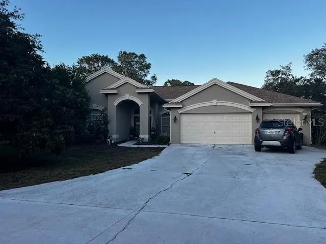 Solid home with a 5-year-old roof, needs cosmetic cleanup to make it sparkle. This 3-bedroom, 3-bath home with an office and 3-car garage sits on a .57-acre corner lot. Split floor plan with a spacious master suite. The second bedroom includes an ensuite bath with exterior access—ideal for a future pool bath. Features include a large screened lanai, circular driveway, formal living and dining rooms, a kitchen open to the family room with fireplace, breakfast nook, and laundry room.