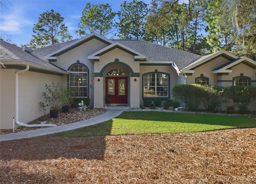 Spacious and FUN! From the moment you enter, you're welcomed by vaulted ceilings and engineered hardwood floors that beautifully frame the view of the sparkling pool through the pocket sliders. The open kitchen with a breakfast nook and family room combination adds space and versatility, complete with a tray ceiling and additional sliders leading to the pool. The primary bedroom is made for relaxation and comfort, featuring an attached sitting area/office with engineered hardwood flooring and private lanai access. The primary bath is spacious, with a jetted garden tub and an oversized walk-in shower. Bedrooms two and three feature new carpet and are generously sized, offering plenty of room for everyone. The dedicated office space has tray ceilings and new carpeting, and the dining room is complete with hardwood flooring and enough room for everyone! Enjoy year-round outdoor living in the heated saltwater pool and spa within the 46' x 26'+ screened lanai. Step beyond the lanai to a paver courtyard that is perfect for entertaining or relaxing in the sun. The home's landscaping includes concrete edging surrounding the entire property for a polished finish. Built in 2003, this home offers 2,635 sq. ft. of living area and 3,391 sq. ft. total under roof. The Roof, hot-water heater, gutters, and electric pool heater were all replaced in 2023! The A/C was replaced in 2018 with a Lennox 5-ton, 15 SEER unit. The 14' x 20' shed has electric. Situated on over one acre, this home lies in the heart of Pine Ridge Estates, an equestrian community established in 1972, spanning over 3,000 acres. The community features 28 miles of horseback and walking trails, and a 94-acre recreation complex with: A large equine show arena, regulation dressage ring, jumping ring, trail arena, round pen, and small cross-country area Lighted tennis and pickle-ball courts, shuffleboard, a dog park, and an RC flying field with airstrip and pavilion A state-of-the-art playground with shade cover, swings, and gazebo Two meeting rooms; one large with a commercial kitchen for private events, and a smaller one with a full kitchen The HOA fee is currently under $100 annually that's an incredible value for all that's offered! This prime location is just half a mile from Mustang and Elkcam Blvd, 2 miles from grocery stores and doctors' offices in Beverly Hills, and 5 miles from the Pine Ridge Equestrian Club, The Shoppes of Black Diamond Plaza, Target, Walmart, and the Suncoast Parkway. Don't miss your opportunity to view this stunning Pine Ridge home today!