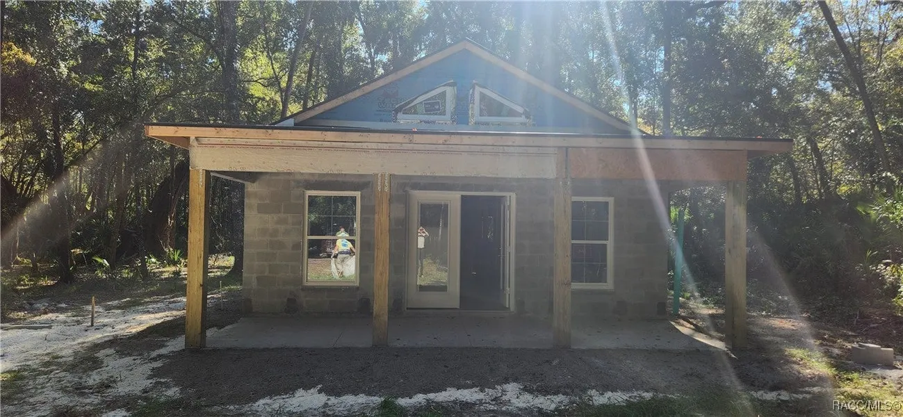 Promising opportunity to complete a home on 1.41 acres in Inverness, FL. This 864 sq. ft. block-constructed residence is approximately 75% finished, with roof shingles to be installed prior to closing. The planned 2-bedroom, 2-bath layout is fully framed, and the interior remains unfinished, providing a versatile space ready for customization. The property is cleared with a mix of mature trees, offering both openness and natural surroundings. Wildlife such as deer, turkey, and songbirds are commonly seen on-site and can be enjoyed from the front porch area. The location provides a quiet setting while remaining just minutes from downtown Inverness, offering convenient access to shopping, dining, and medical services. A great opportunity for completing a home in a peaceful, natural environment with room to personalize the final details.