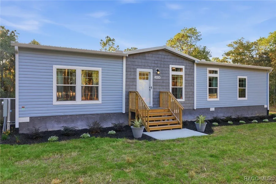 Welcome to this serene 3-bed, 2-bath manufactured home nestled on a private 4.39-acre lot in Homosassa. With over 1,800 sq ft of living space, the home features an open layout with a lot of upgrades and a detached garage with plenty of room for your outdoor dreams! This beautiful home has a upgraded new AC unit, 9' sidewalls, stucco skirting, metal roof, 11'x20' outback porch, LED lighting, and extra insulation throughout the house to be energy efficient! This home is perfect for privacy, familiies, hobbyists, or those wanting a quiet escape in Citrus County. Inside, natural light flows through the open floor plan. The living room is warm and welcoming, leading into a functional kitchen with ample counter space and cabinets. Each of the three bedrooms offers a peaceful retreat, while the two full baths are comfortably laid out for convenience. The 20'x25' detached garage with a oversized...