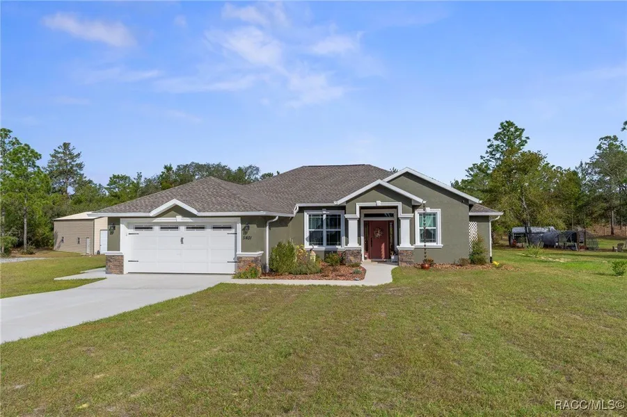 Welcome to this beautifully designed 2024 custom-built home, perfectly situated on 2.62 private and fully fenced acres in Dunnellon. Thoughtfully crafted for comfort, functionality, and modern living, this property offers an exceptional blend of indoor luxury and outdoor convenience. Inside, you'll find a spacious split-floor plan featuring 3 bedrooms, 2 bathrooms, and 1,789 sq ft of well-appointed living space. Luxury vinyl plank flooring flows throughout the home, providing durability, style, and easy maintenance. The master suite features a tray ceiling in the bedroom, a spacious walk-in closet, and barn door access to a beautifully designed en suite complete with vanity space, a walk-in shower, and dual sinks. All closets throughout the home are equipped with custom wood shelving, adding both durability and elegance. The stunning kitchen boasts crisp white cabinetry, stainless steel ...