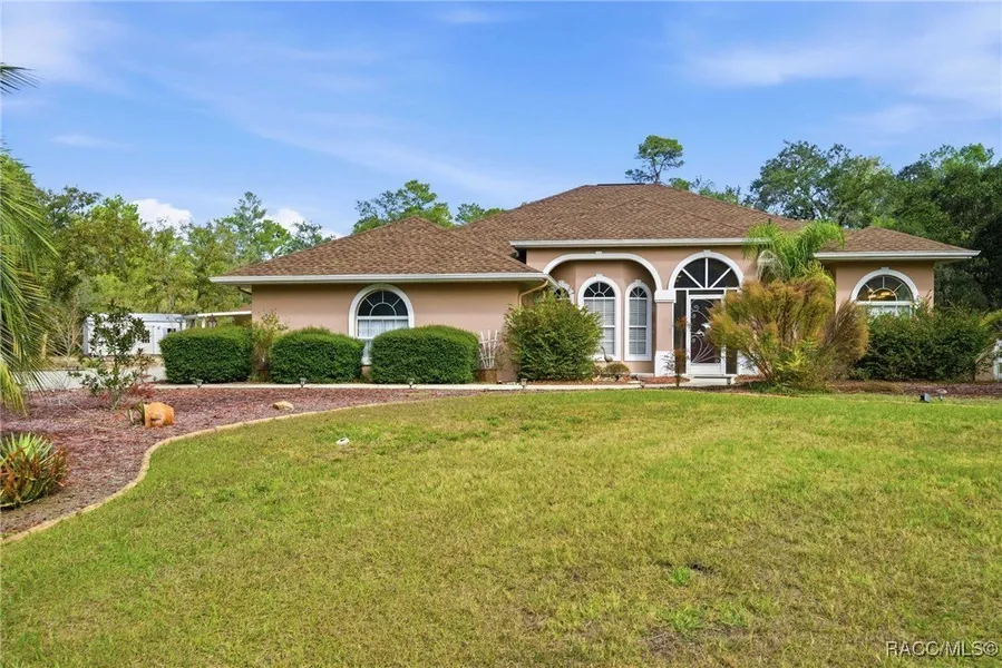 You may not have gotten to where you are today by being a total YES man or woman, but I think YES will be the only possible response you'll be able to make when you see all the features this property has to offer. Let's start with size and location! Serene setting on 1.93 acres on a rare cul-de-sac in the heart of Pine Ridge means you won't see your neighbors until you drive out! With this large parcel, you can have more of everything, including horses! A gravel pad for the RV alongside the driveway includes a 50Amp plug for convenience. Park the boat under the 28x10 carport attached to the detached garage complete with electric, A/C wall unit, storage closet and workbenches on top of cabinets! Another carport is attached to the back of this garage and is the perfect spot for the lawn equipment to stay out of view and the elements! A 10x20 shed is perfect for woodworking, gardening or just storage. The home has been updated with rich engineered cherry hardwood floors that match the cherry cabinets of the kitchen and breakfast nook. A classic black granite countertop and slate backsplash complement the craftsman-style look of shaker cabinet doors, wine rack and light fixtures. Even the custom nook table and barstools will convey with the house as they were designed to match the cabinetry. Talk about expanding your options, the disappearing sliding glass doors welcome the outside in!! The pool was built in 2008, about 10 years newer than the house, and has a double waterfall and around the corner awaits the summer kitchen with built-in Weber grill, storage and retractable awning. The grill chef will gladly handle the heat next to the pool but the solar panels on the 2022 roof will also add a little heat to the pool season. The dog run will give your furry friend some room to roam off leash. The primary suite also opens directly to the lanai and features a walk-in closet, dual sink vanity, jetted tub, refreshed tile shower and a little privacy please! It's all here for the savvy buyer who not only wants it all, but wants it deluxe, too!