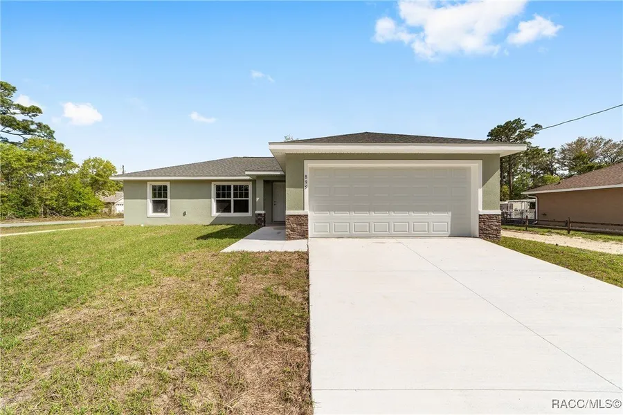 Home is complete!! This gorgeous brand-new home located in Citrus Springs is the ideal escape from the hustle and bustle of city life! With an open floor plan, pleasing neutral colors and vinyl plank flooring throughout, this 3-bedroom, 2-bathroom residence has all the charm and comfort any family could desire. Showcasing shaker style cabinets with granite counter tops in the kitchen, a washer/dryer hook up in the inside laundry for added convenience, plus a stainless-steel appliance package, this home is sure to impress. Enjoy your time in the neighborhood while nearby shopping, dining, medical centers and natural springs keep life exciting. Plus, its location near pristine rivers and springs allows for outdoor activities where adventure finds you!