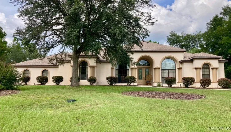 Stunning Pool Home in Sugarmill Woods - High & Dry on a Double Lot! This impressive home features 3-bedrooms plus additional office space, 3-bathrooms and a 3-car garage! Offering nearly 3,000 sq ft of living space and almost 4,000 sq ft under roof. The home is perfectly situated on two high-and-dry lots and not in a flood zone. This home delivers space, privacy, and peace of mind. Step inside and you'll immediately notice the soaring ceilings with double crown moulding - almost 14 feet high in the living room, dining, and entry areas. 10-foot ceilings are found throughout the rest of the home. The split-living floor plan layout is excellent for everyday living and entertaining. Featuring a spacious kitchen with stainless steel appliances and expansive panoramic windows that showcase views of the brand-new 2024 pool and screened cage. Pocket sliders open fully to create seamless indoor-outdoor transition from the formal living room. The office/flex room adds versatility for remote work, hobbies, or guests. Additional highlights include beautiful hardwired outdoor lighting, public water and sewer, an irrigation well with multiple spigots as well as being connected to the sprinkler system, central vacuum, and a hard-wired alarm system with central monitoring. Major updates have already been taken care of, including a new roof (December 2022), Gunite pool with full screened cage (2024), hot water heater (2023), refrigerator (2024), dishwasher (2025), and certified survey (2024). Conveniently located about 1 hour north of Tampa, this home offers the perfect blend of comfort, functionality, and Florida lifestyle living. Don't let this one slip away-schedule your showing today!