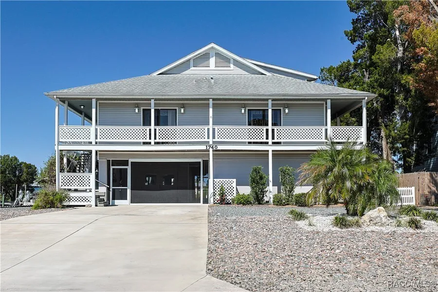 Welcome to your dream waterfront retreat in beautiful Crystal River, Florida. This custom-built 4 bedroom, 3 bathroom stilt home is perfectly situated on a deep water canal with no bridges to navigate, offering direct Gulf access and endless opportunities for boating, fishing, and coastal relaxation. The property features a spacious, open concept floor plan with a stunning stone fireplace and a soaring cypress tongue and groove plank ceiling that adds warmth and character to the main living space. The gourmet kitchen is outfitted with stainless steel appliances, rich wood cabinetry, and luxurious granite countertops, great for entertaining or everyday living. Step out onto the large screened porch and enjoy peaceful views of the water, wildlife, and coastal breezes. The spacious master suite includes a luxurious en-suite bath with heated floors for added comfort, while a loft space adds flexibility for a home office or bonus area. Enjoy sunrises and balcony access from both spare bedrooms on the upstairs living area. Downstairs, guest quarters provide a comfortable space for visitors or multigenerational living that is equipped with living room, kitchenette, bedroom and own screened in porch. The two-car garage includes a dedicated workshop, and the oversized driveway offers plenty of space for RV, boat, or guest parking. A 3-level lift adds convenience to this elevated home. For boating enthusiasts, a 40-foot floating dock and 10,000-pound boat lift make getting out on the water a breeze. From your backyard, it's just a 15-minute boat ride to the Gulf of America and only 10 minutes to Kings Bay, home to multiple waterfront restaurants and famous freshwater springs, including the world-renowned Three Sisters Springs. A nearby community boat ramp adds even more convenience for launching extra watercraft's. Whether you're relaxing on the porch, exploring the springs, or enjoying waterfront dining just minutes away, this property delivers the very best of the Florida lifestyle in a location that feels like a hidden gem.