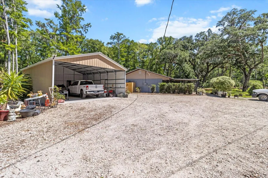 This Beautiful 10 acre Homestead Has a partially renovated 3 Bedroom 2 Bath 2 car garage home with a 24x30 steel building extra tall for air boats, RV and tall trucks and a large 20x15 concrete slab off the side. New roof in 2022. The property has a large assortment of fruit and nut trees including 10 Dunston chestnut, chestnut oaks, Native persimmon, Fuji persimmon, pear, Chickasaw and scarlet beauty plum, Barbados cherry, beauty berry, and shampoo ginger. The pasture has large patches of alfalfa, hemp, and wild flowers for the local wildlife . The property also has a pond behind the house that is home to wood ducks and crawfish. The 33x18 Cracker house / shed has been converted to a growing house with insulated walls and lights for propagating tree cuttings or you can renovate into a guest house . Barn is 46x15 with 4 stalls an additional 6in well and don't forget the hunting condo ove...