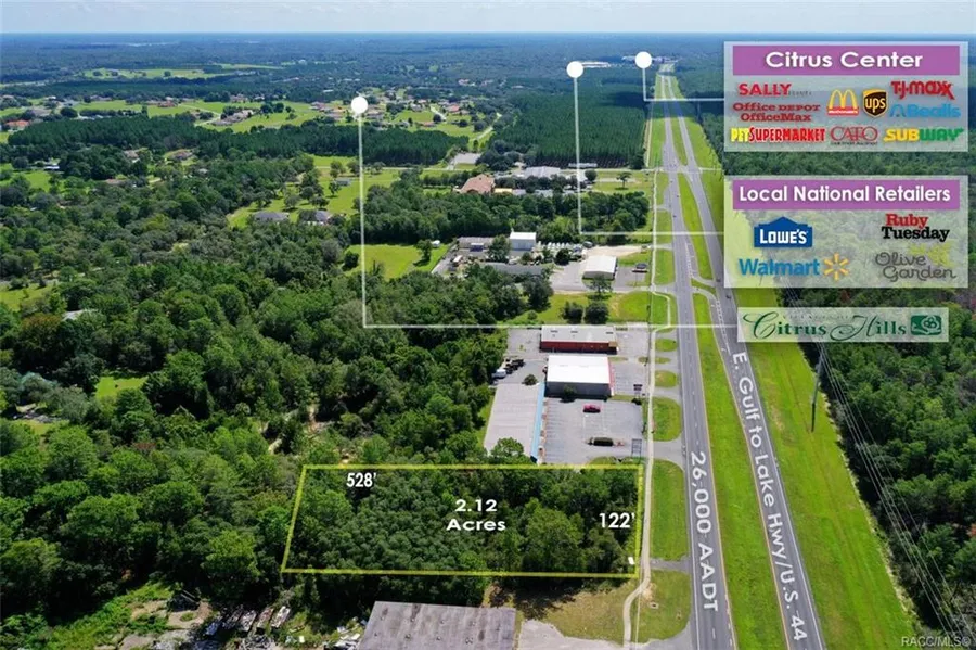 Prime commercial acreage in high growth area of Citrus County, Florida just minutes from the new $135 Million Suncoast Parkway Expansion. This 2.12 Acres is flat ground ready for development from medical office to storage facility the possibilities for this parcel are bright. Located in the Central Ridge Medical Corridor and on the spine of Citrus County Commercial Corridor with over 122' frontage on SR 44. Located just past the intersection of SR 44 and Kensington Drive gives great Access to the Community of Citrus Hills and several communities in the surrounding area. Located just to the East of subject property you will find nationally recognized retailers such as Walmart, Lowes, Regal Cinemas, and TJ-Maxx. If you're looking for a bargain this parcel is ready for purchase.