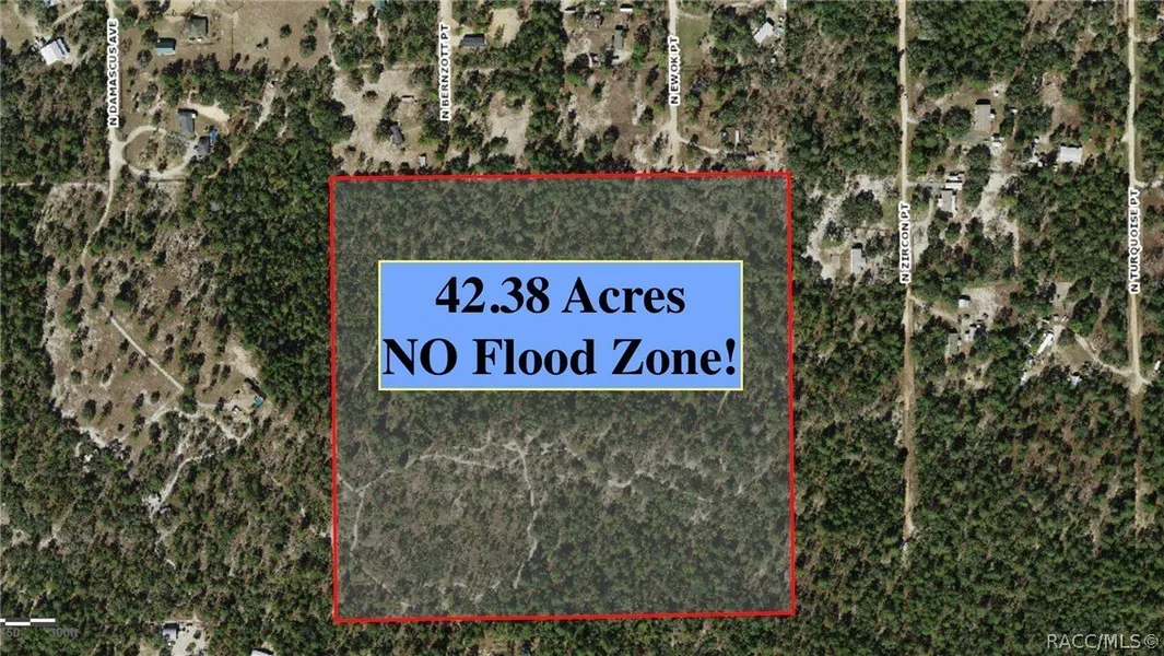 WOW! 42.38 acres with NO flood zone at all on it! This huge estate features very high ground, with an ideal hill near the middle of the property that would be perfect to build your home, or MOBILE/MANUFACTURED homes are also OK here. From the hill you could have amazing views of the surrounding forest from your house. Beautiful trees and no deed restrictions. An electronic copy of a survey is available, which will save you about $4,000. There are two good quality lime rock roads with access to the property from the North side. We strongly recommend you take N Ewok Point instead of Bernzott Point, since that is the road where the existing path into the property is. Both roads end at the border of this property. There is NO HOA for this property, and it connects to the Mini Farms subdivision, and is also near the upscale Pine Ridge Estates. This is the perfect property for your farm/ranch retreat or just your house with a huge amount of woods to roam. Just 7.1 miles to Winn-Dixie, 9.6 miles to Publix. 1.2 hours to Tampa International Airport, and 1 hour & 40 minutes to Disney World. With all of the large properties like this in Florida getting split up for profit and development, large estates like this are becoming more rare all the time, and will only increase in value as less of them exist. It may be possible to split this into 4 lots 10.5 acres each, but you would need to build a bit more roadway so that each new lot has at least 100 feet of road frontage. Buyer to verify any subdividing details. To the west there is another property of similar size with a very nice house on it, adding even more privacy buffer area. Zoned RUR-mobile homes allowed. Investor owned, priced to move quickly!