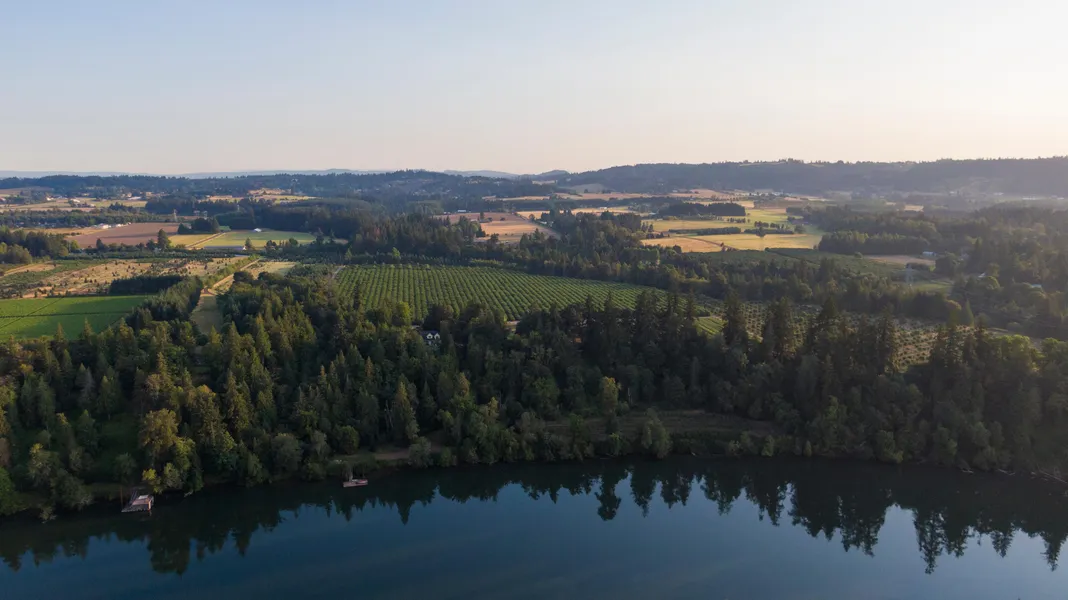 A rare find. Watch the sun's first rays sparkle off the glassy Willamette River. Enjoy nearly a half-mile of riverfront with a long, sandy beach. 80 acres of privacy and seclusion - right on the water. Yet, just 5 minutes from Interstate-5 and Wilsonville. Just 20 minutes from downtown Portland and the airport. Nearly 40 acres of high-value hazelnut orchards and 2.5 acres of apples bordered by tall trees and the lush Newland Creek stream corridor. Beautiful turn-of-the-century farmhouse with wood floors and a spacious front porch overlooking the river. Historic 1870's barn built by descendants of Oregon Trail pioneers and a 1920's nut dryer. Several gorgeous building spots allow you the opportunity to create the new home you've always dreamed of. Large parcels on the river this close to town are virtually unheard of.