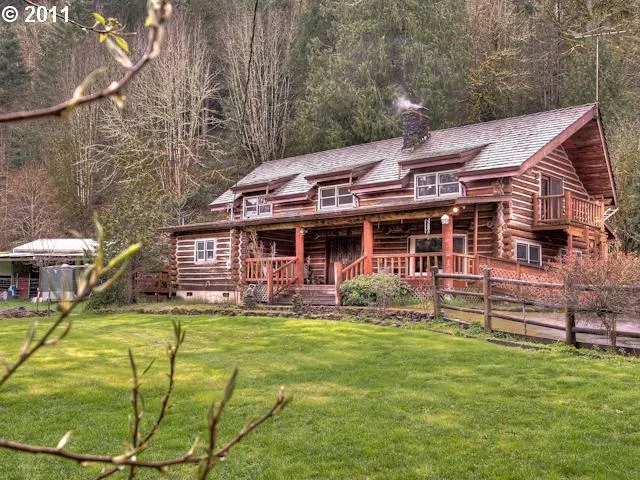 Classic Log Home on Private 8.84 Acres with your own waterfall! Across the road from the Clackamas River, and some of the best fishing in the Northwest! The property also has a 36x60 Shop, 15x40 RV Garage, 24x40 Barn with 2 Stalls and fenced pasture.