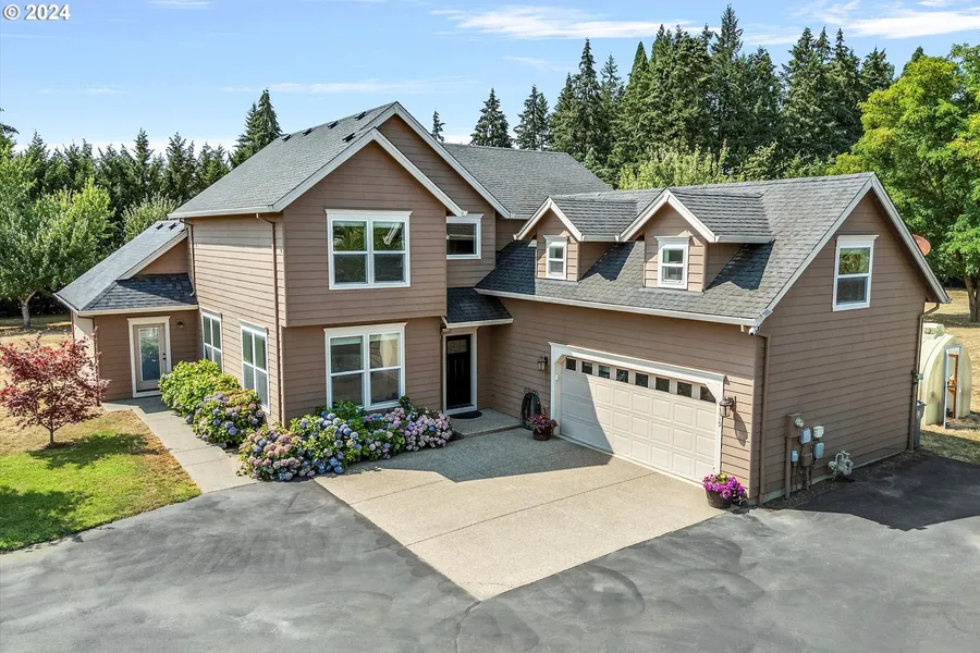 New Price!! Country living close to town! Private 3021 sqft custom home with 4 bedrooms and 3.5 baths. Two primary suites featuring tile showers, walk in closets and one suite is on the main level. Light and bright home with chef's kitchen featuring a big picture window, two pantry's, a pot filler, large granite counters and high end appliances. Hardwood floors. Big bonus room with lots of storage. All lighting and ceiling fans have been updated recently. Every bedroom has walk in closets. Formal living and dining rooms. Family room with cozy fireplace and sliding doors to covered back patio with extensive concrete perfect for entertaining. Newer HVAC and hot water heater. Barn (60x36) has concrete floor, horse stall that exits to covered paddock, hayloft, tack room with water and electricity and motorized large barn door. Covered horse arena (50x50) has interior lighting and front and b...