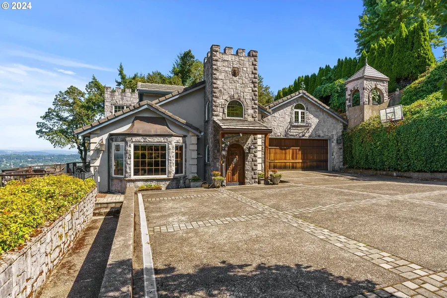 Nestled among the trees on a 3.5 acre lot in Lake Oswego's prestigious Skyland neighborhood. Its European inspired style gives a sense of grandeur, luxury, and ultimate privacy. Tucked up along the hillside, you will enjoy jaw-dropping views all year long. This home is an entertainer's dream with a pool, game room, 3 car garage, 200 bottle wine cellar, multiple wrap around decks, four custom water features and much, much more. Sweeping views of Mt. Hood, Mt. St Helens, Mt. Adams, and the Willamette River. The living room features vaulted ceilings and and a stately gas fireplace. Updates include new carpet, brand new furnaces and dual smart controllers, freshly trimmed trees, new lighting in bedrooms, and much more! Although this home has 3 stories it has main floor living with the kitchen, laundry room, primary suite, guest room and additional full bathroom all on the main level.