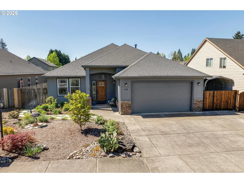 Welcome to this beautifully maintained 3-bedroom, 2-bathroom one-level home located on a quiet street on Canby’s desirable Northside. This thoughtfully designed residence offers a spacious great room floor plan with high ceilings and vaulted accents in both the living area and primary suite, creating an open and airy feel throughout. The living room features a cozy gas fireplace and ceiling fan. Versatile home office or flex space has french doors. The kitchen has granite countertops, stainless steel appliances including a newer Bosch dishwasher, gas cooking, an oversized pantry, and an eating bar. The private primary suite offers direct access to the backyard, a walk-in closet, dual sinks, and a walk-in shower. All bedrooms are equipped with ceiling fans for year-round comfort. Step outside to enjoy the professionally landscaped, low-maintenance backyard featuring a covered patio with c...