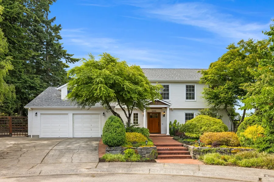 Nestled at the end of a peaceful cul-de-sac, this thoughtfully updated home offers exceptional privacy, and serene surroundings. On the market for the first time in 25 years, this meticulously maintained home blends comfort with timeless charm, perfect for everyday living and effortless entertaining. Enjoy year-round comfort and peace of mind with a new roof, furnace, and A/C system. The curb appeal shines with a newly custom oversized wood front door, updated front porch, freshly painted interior and exterior, and new carpeting in the family room, stairs, and upper level. Refinished original oak floors bring timeless warmth to the living spaces. The spacious kitchen is equipped with a 6-burner gas cooktop, new built-in oven, dishwasher, garbage disposal, motion-sensor faucet. The kitchen flows seamlessly into the family room with a cozy gas fireplace, overlooking an expansive patio ideal for hosting guests. Coved ceilings, abundant natural light, and a second fireplace make the formal living room both inviting and versatile. Privacy doors offer flexible use of space for gatherings or quiet moments. Wake up to stunning views of Mt. Hood, Mt. Adams, and Mt. Scott from the spacious primary suite, featuring an oversized soaking tub, separate shower, and dual walk-in closets, blending everyday comfort with indulgence. An attached ADU on the main level offers a private entrance and is perfect for multi-generational living, guest accommodations, or use as a second primary suite. It includes a full bathroom, compact kitchenette setup, and tranquil views of the pond and waterfall. The fully fenced yard includes a lower-level garden, updated irrigation system with new controller, ambient night lighting, and space for relaxing campfires beneath the evergreens. The professionally landscaped and maintained garden completes this private outdoor oasis.