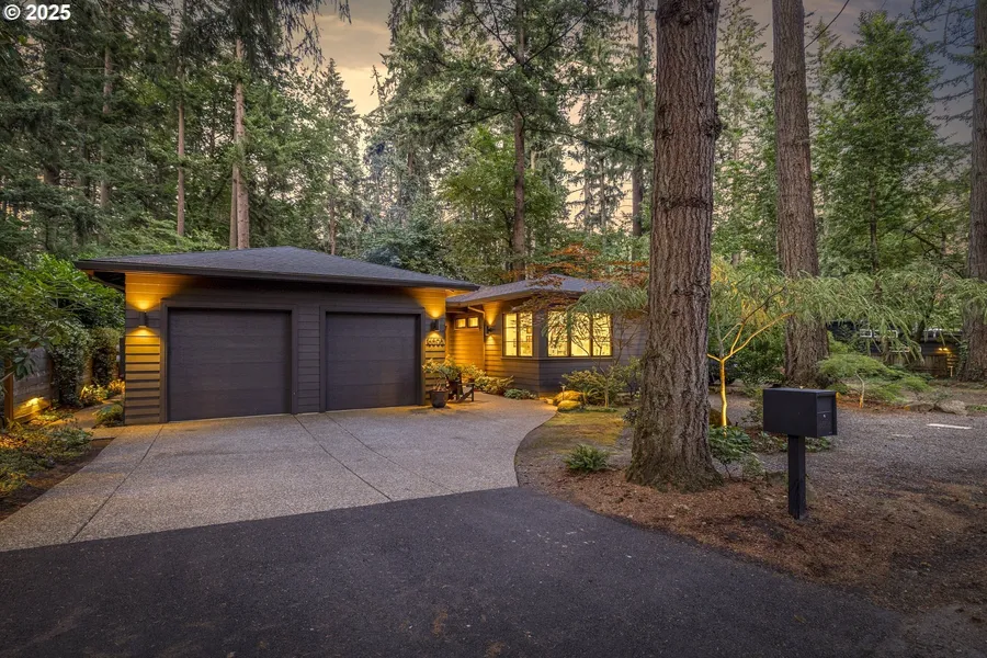 Tucked beneath a canopy of mature trees, this impeccably designed Pacific Northwest private compound built beginning in 2017 and includes an artistic 1882 square foot main residence, a fully appointed 800 square foot one bedroom, one and a half bath guest house, a separate 501 square foot live-work studio, and two matching sheds-each thoughtfully built to reflect a cohesive architectural vision and craftsmanship. Together, they form a private and elegant retreat where every structure complements the next in both style and quality. The main house features three bedrooms and showcases a dream kitchen with top-tier appliances, premium surfaces, and tailored cabinetry perfectly suited for the culinary enthusiast. Every detail reflects luxury, from the high-end finishes to the intentional design choices throughout. The beautifully appointed guest house offers a full one-bedroom suite with a petite luxury kitchen, living room with lots of glass and a gas fireplace. Add the extra half bath and it makes it an ideal space for long-term guests, multi-generational living, or income potential. The live-work separate studio provides a bright and inspiring space for creative work or a quiet home office, while the two matching sheds offer beautifully integrated storage or functional flexibility: all surrounded by mature landscaping and the natural beauty of the Pacific Northwest. This is more than a home, it's a thoughtfully designed, natural compound that offers beauty, functionality, and versatility set in a landscape reminiscent of a forest park. With multiple living and creative spaces, it's a rare opportunity to own a boutique forest sanctuary in Lake Oswego, Oregon. Access to 3 lake easements and the swim park.