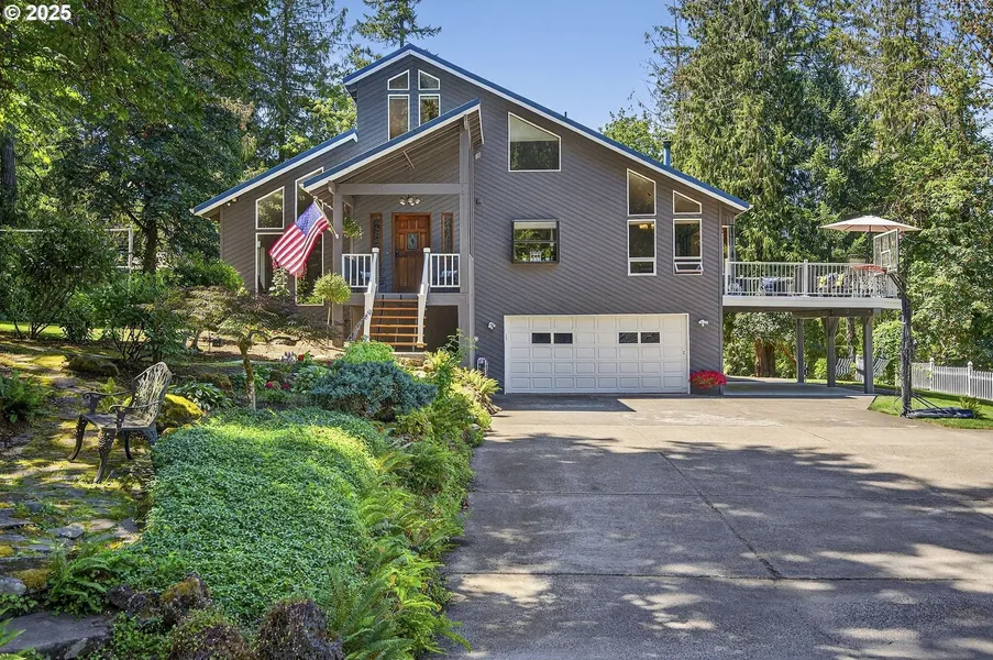 Tucked away in a serene and private setting, this one-of-a-kind custom-built house is a perfect blend of luxury, function, nature and entertainment. Featuring 4 spacious bedrooms, 3.5 bathrooms and an oversized office/bonus room that could be a 5th bedroom, this home offers ample space with an option for multi-generational living. The heart of the home is the well-appointed kitchen complete with stainless steel appliances, quartz countertops, a large island and plenty of storage. Enjoy both a cozy living room and a formal living room, plus a large loft above. The owners' suite features his-and-her closets with a nook between, a soaking tub, soapstone countertops, and a walk-in shower. On the ground level you'll find a private attached guest quarters, perfectly suited for extended family or guests. With a dedicated separate entrance, full kitchen, living and dining area, bedroom, and full bathroom, this space provides true independence and privacy. An abundance of outdoor amenities make this property truly unique. Store your toys or work on projects in the spacious 20’x60’ insulated shop with concrete floors and 220 power. In the back of the shop is a room designed for auto painting and furniture restoration. The front yard features a babbling 4-tier water feature with koi, ponds, waterfalls and lush landscaping. A large deck off the main living space overlooks the backyard and pool. Cool off on those hot summer days in the oversized above-ground pool with surrounding deck. Gardeners will delight in the greenhouse, raised beds and a variety of fruit and berry trees. 3 acres of mature forest include meandering ATV/walking trails and a secret 10’x15’ tree house. 11,000 KW generator included. This truly special property offers a perfect blend of comfortable indoor living, outdoor entertainment and natural beauty. Don’t be afraid to book an evening showing on this one. The ambiance lighting is stunning as the sun starts to set!