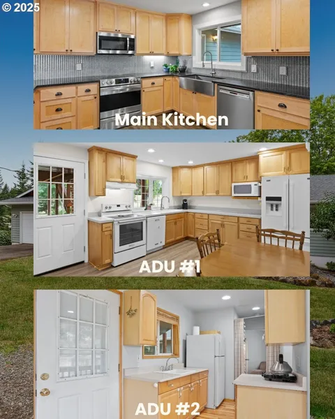 This peaceful country estate with 2 separate ADU's offers multigenerational living, potential rental income, or your own hobby farm. The opportunities are endless! Check out this 6 bedroom, 4 bathroom home on 3.33 acres located on a dead-end road within minutes to shopping, restaurants and highway. Kitchen was remodeled in 2019 with maple cabinets, granite countertops, farm sink, stainless steel appliances and LVT floors. New HVAC was installed in main house in 2025. 2 separate garages for all your cars, toys or use the oversized garage as a shop. This dream property boasts covered decks, a garden, garden shed, RV hook-up, fruit trees, grapes, multiple blueberry varieties, cane berries, established timber and a 50 amp generator hook-up. Opportunities on the farm are endless with space for cattle, chickens or a shop. So much more to see; don't wait to schedule a showing.