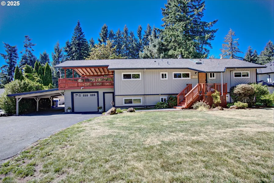 The perfect blend of serenity and convenience. Spacious 2 level Damascus home, with mid-century vibes, on a 1/2 acre, just minutes from town. Beautiful kitchen, with custom cabinetry and granite counters, flows into soothing living space, complete with exposed beam ceilings. Skylights, intricate wood flooring, and vaulted wood ceilings enhance the natural feel. The highly versatile floorpan could easily accommodate multi-generational living. Huge wrapping covered deck promotes four season entertaining and picturesque relaxation. Newer roof, sand filter septic, and lower level carpet. Attached garage, carport, and huge lot, offer workshop and storage space for all the toys (RV, boat, ATV's, etc...). Community well offers affordable irrigation.
