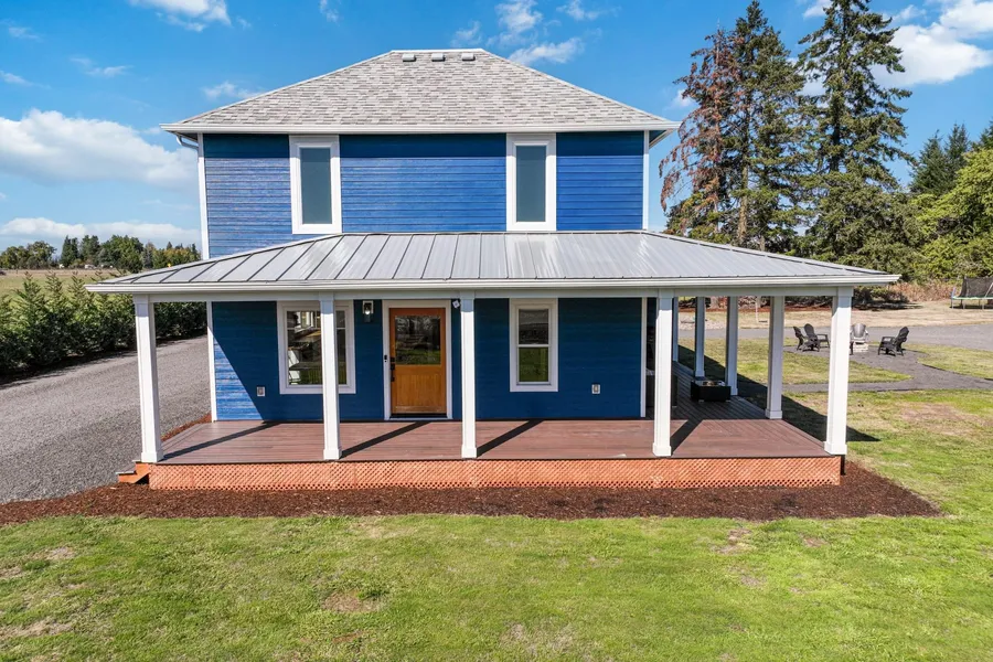 An inspired modern farmhouse, this Molalla residence masterfully blends the character of its 1910 origins with the sophistication of a full, down-to-the-studs renovation. Every detail has been reimagined with intention ' from new electrical and plumbing systems to carefully curated finishes that balance contemporary design with timeless appeal. The heart of the home is an airy, open-concept living, dining, and kitchen space anchored by custom cabinetry, quartz surfaces, and a thoughtfully designed pantry offering additional prep space. Light flows effortlessly through the interiors, highlighting clean lines and natural textures. A generous mudroom and laundry room enhance everyday function with style. The primary suite is a private retreat, featuring a spa-inspired bath with a glass-framed shower and a luxurious soaking tub. Two additional bedrooms complete the main residence, offering comfort and versatility. Set on one acre, the grounds include raised garden beds, a chicken coop, and an oversized two-bay shop with guest quarters, office, and a lofted storage space ' an ideal balance of utility and design. This is not simply a remodel; it is a reinvention of farmhouse living, where historic charm and modern craftsmanship converge.