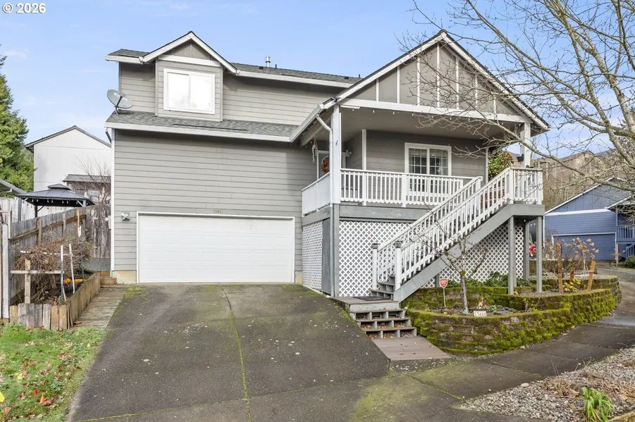 Spacious 3 bedroom, 2.5 bath home on large fenced corner lot. Being Sold "As-Is." Awesome large covered front porch, great place to hangout! Open floor plan. Living room features a gas fireplace. Luxury Vinyl Plank flooring throughout entire home (no carpet). Kitchen features lots of cabinets, granite counters w/ recessed sink, Large built-in eating area (an against the wall island) with more storage, tile floor, stainless steel appliances, gas range, subway tile backsplash, built-in microwave. Large utility room with built-in cabinets. Upgraded 6" base boards throughout. Primary bedroom has vaulted ceilings, built-in storage, walk-in closet with custom organizers, spacious remodeled bathroom with dual sinks, large mirror and tile flooring. The fenced backyard is well landscaped and has apple, persimmon, fig, cherry & southern & Jane magnolia trees. Also lemon, blackberry, 2 crepe myrtle & limelight hydrangea. Storage is ample with a large shed and storage under the front porch. 2 car garage, new AC & 96% efficient gas furnace in 2023. New roof in 2017. Close to Summerfield Park, Mt. Talbert Nature Park. Clackamas Town Center & Hwy 205 are just 3 miles away. Highly rated schools!