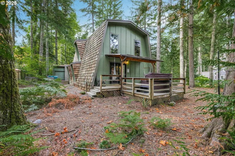 Welcome to this beautifully updated 3-bedroom, 1.5-bath home in the desirable Timberline Rim community of Rhododendron on a massive corner lot. Currently operating as a successful vacation rental, with the option to purchase fully furnished, this property offers a perfect blend of comfort, charm, and investment potential. Just about an hour from Portland, this mountain retreat provides year-round access to world-class hiking, skiing, and the charm of local restaurants and nature at your doorstep. With 1,792 sq. ft. of living space on nearly a .25 acre wooded lot, the setting offers both privacy and tranquility. You'll also be just a short walk to the Sandy River, ideal for fishing, kayaking, or peaceful strolls along the water. The Timberline Rim community offers exceptional amenities including a pool, tennis and basketball courts, and access to scenic common areas that's perfect for recreation and relaxation. Inside, the home shines with thoughtful updates including fresh interior paint, and a stylish kitchen that blends rustic wood cabinetry with modern quartz countertops. The open-concept living area has soaring vaulted ceilings and a cozy wood-burning stove, creating a warm, inviting space to unwind after a day of mountain adventure. All three bedrooms are spacious and versatile, while the updated bathrooms showcase a modern, clean design. Step outside to your private backyard, complete with a hot tub, hammock chairs, and forested serenity making it an ideal place to relax and recharge. Whether you're looking for a primary residence, vacation home, or turn-key rental investment, this property offers it all. Don't miss your chance to own this stunning mountain getaway in one of Rhododendron's most sought-after neighborhoods.