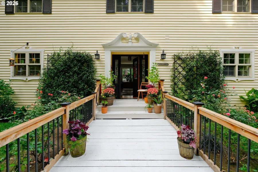 Featuring a private garden-level apartment with separate living space, offering flexibility for multigenerational living or supplemental income. Rare Willamette Falls view from stately Georgian-Colonial home. Perched in Rivercrest, off of the main road, this elegant, enchanting home offers a sweeping, unobstructed scape of the river, backdropped and framed by the forested hills of West Linn. The open floor plan is complemented by hardwood floors throughout with nearly every room capturing the stunning views. Three expansive decks and a cozy firepit provide exceptional entertaining spaces. A serene third floor book nook overlooking a lush, green slope offers a peaceful retreat. An extraordinary architectural feature: fourth bedroom bookcase reveals a hidden three-story passageway leading to the large unfinished attic which offers additional square footage and more opportunity. Walkable to...