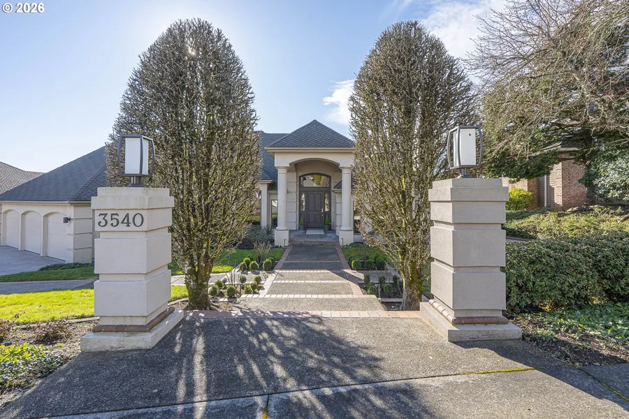 Rare one-level luxury home in Barrington Heights. Located on a private .37-acre lot in West Linn's premier neighborhood, this residence combines intentional design with high-end quality. The grounds feature a newly resurfaced in-ground saltwater pool and waterfall spa, supported by new high-efficiency equipment. A stamped concrete patio and established, professionally maintained gardens backing to a private, wooded green space. The interior is defined by an open, accessible floor plan with high ceilings, detailed millwork, and extra-wide hallways, that accommodate effortless mobility. The entry connects a formal sitting room with a gas fireplace to a dining area featuring a built-in buffet. In addition to three spacious bedrooms, the home includes a dedicated office with built-ins. Both full bathrooms have been renovated with heated tile floors, complemented by an updated guest powder ro...