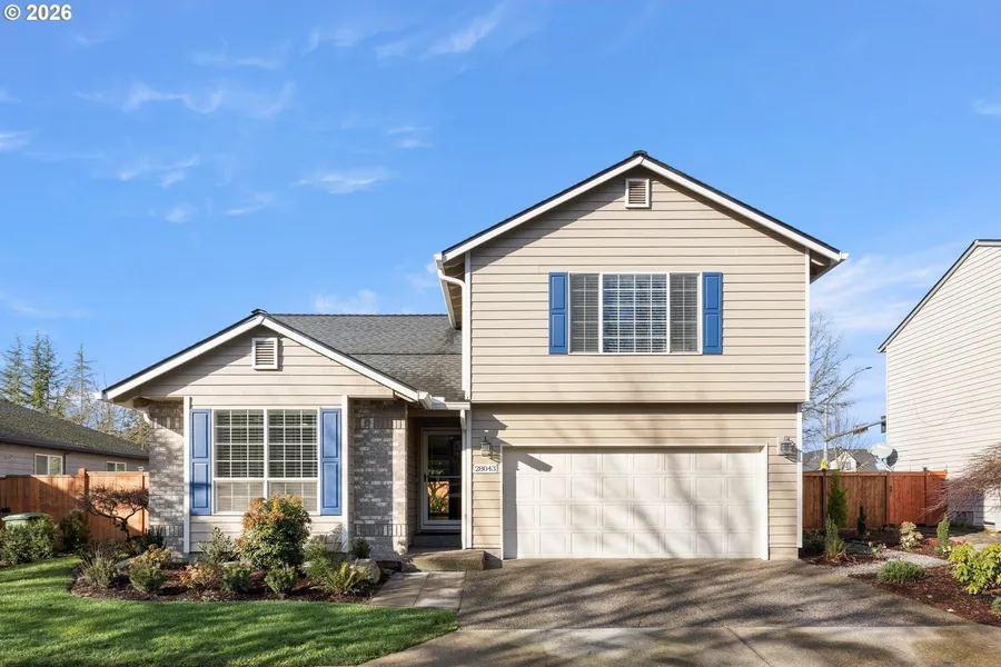 Beautifully loved home in popular Landover Community in Wilsonville. Near schools and shopping. Friendly neighborhood. Home has solar which is owned outright keeping the electricity bill low. Very private street. Covered patio for Summer barbecues. Garden and tool shed. Primary bedroom has a bonus room off it that could be an office, nursery, craft room. Whatever your heart desires. This home has been made lovingly their own with many upgrades. Downstairs office could be 4th bedroom. All new gutters. Fans in all bedrooms and living room. Full baths have lighted mirrors.
