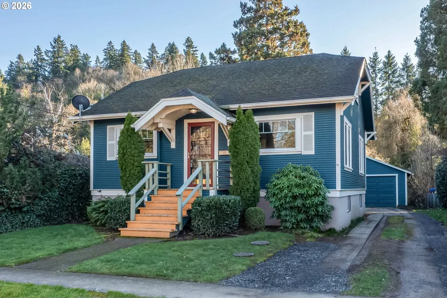 This adorable bungalow in Oregon City blends classic charm with thoughtful updates and flexible living space. A welcoming covered entry leads into a light-filled living room with beautiful crown molding that carries throughout the home, creating a timeless feel. Just off the living room is a formal dining room perfect for gatherings and everyday meals. The updated kitchen features open shelving, ample cabinetry, and a cozy breakfast nook area for casual dining. At the back of the home, you'll find a convenient laundry/mudroom for added functionality. The main level includes one bedroom and a full bathroom with a tiled bath/shower and a warm wood accent ceiling. Upstairs offers a huge bonus/flex space ideal for a home office, playroom, or additional living area. The basement provides even more room to spread out with a large bonus/living area and two full bedrooms, offering endless possibilities for guests or multi-generational living. Outside, enjoy a private backyard with plenty of space to relax, garden, or entertain, along with a detached two-car garage for storage and convenience.