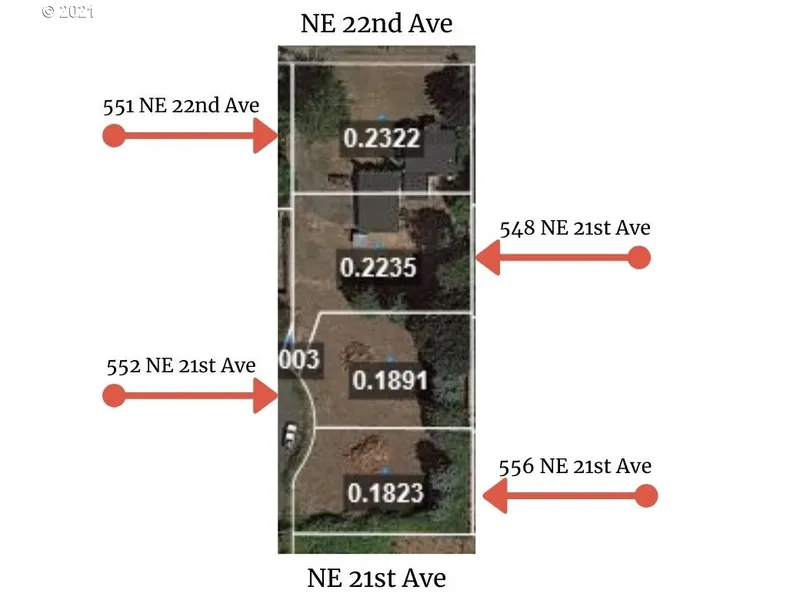 Builders-4 total lots for sale. Lots in this bundle are 552 NE 21st Pl,556 NE 21st Pl, 551 NE 22nd Ave (existing 1920 cottage sold as is) and 548 NE 21st Pl in Canby. Cross listed in residential RMLS#21478495. Buyer to do their own due diligence with City and County. Awesome location close to Willamette Valley Country Club!