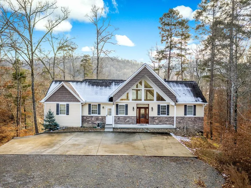 Exceptional Norris Lakefront home for sale on 2.25 acre lot. Built in 2014, this home embraces the open floor plan with 2 master suites on either end of the main level. Soak in the lake views from the wall of windows or while enjoying your coffee on the covered deck. At full pool, the lake surrounds the lot on 3 sides offering a panoramic perspective. 31x36 detached garage has plenty of room for your RV and all the water toys. Covered dock with hydro-hoist and 2 slips. This sanctuary is being offered fully furnished, excluding the boat and jetski. Enjoy as your primary residence, vacation home, or forever home! Located in Lone Mountain Shores which has 2 marinas and does allow for overnight rentals.