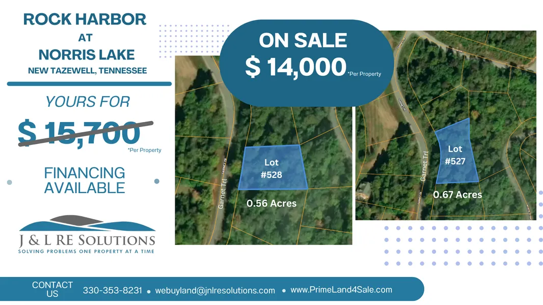 Located on Norris Lake, these lots offer the best of both worlds, both mountain and lake front surroundings. With over a combined 1 acre, you'll have plenty of space to build in a sought after community with desirable amenities to match. Rock Harbor boasts a marina, community pool, walking trails, and breathtaking views. New Tazewell is the perfect place to call home. Do not miss this rare opportunity to own two prime lots in Rock Harbor. Contact us today to experience for yourself the beauty of what this community has to offer.