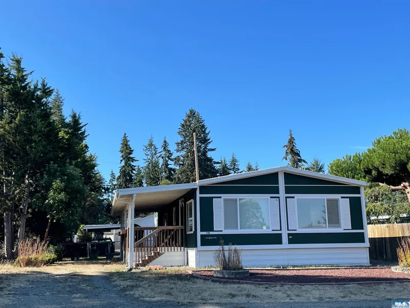2 bedroom 2 full bath with covered porch entry deck on your own lot. No monthly space rent. No restrictions. The double wide manufactured home features ductless heat pump, metal roof, new laminate flooring, walk in closet. The cherry on the cake is the 440sqft detached garage plus two 480sqft car port. Perfectly affordable choice for starter or downsizing. Near Discovery Trail and Lincoln park. Easy access to waterfront, grocery, library, medical, ONP and all amenities in town.