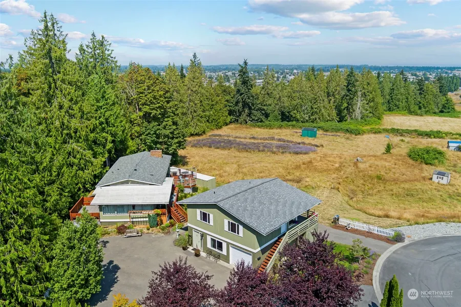 Stunning views of Mt Baker, the straits, protection Island, and the city. Minutes from downtown, yet nestled at the end of a cul-de-sac, with unobstructed views. A creek runs through the back of the property. This home has so much to offer. Special features incl: Main home is a 2 bedroom, 2 bath with enclosed porch, new kitchen, and wood burning fireplace. A Fully furnished 2 bedroom vacation rental in second structure w/ parking. Owner will help with transition to new buyers, many bookings already filled for the rest of the year. Otherwise it can also be used as a private In law Suite. A bonus studio with 3/4 bath and a second laundry. 40 Ft conex box. Ring doorbell, security system, internet and cable all easily transferred. Welcome Home!
