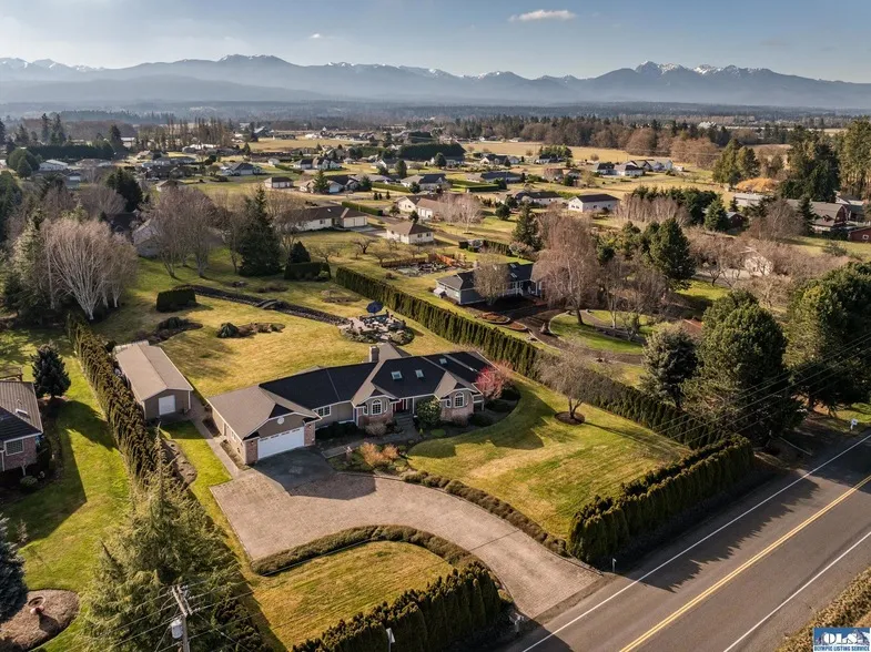 Spectacular mountain view home and private grounds across from the famous Cedars at Dungeness Golf Course. Reached by a handsome brick paver driveway and surrounded all sides by an Arborvitae privacy hedge this home has been updated inside and out with the highest quality materials. Beautiful red oak floors, comfortable living room area w/vaulted ceilings, a wall of windows w/custom blinds looking out to the mountains and your stunning backyard and 3 sided fireplace. Dining area w/more views is set off of one of the most beautiful kitchens you'll see with a circular peninsula Cambria countertop and overhead custom cabinetry and center island with seating. Gorgeous backsplash, updated appliances and more views above the beautiful kitchen sink. Spacious primary BR w/sitting area, slider out to private back deck, large walk in closet plus an incredible primary bathroom w/tile floors, gorgeous tub, separate tile shower, 2 pedestal sinks, beautiful porcelain tile counters all framed by a stunning stone accent wall. There is another BR with yet another stunning guest bath and a cozy den/office that could easily double as the 3rd BR plus another small office. The backyard is incredible. Served by the Cline Irrigation ditch via underground sprinklers the back yard is like a park. Large stone patio area w/firepit (the owners also owned Blake Tile & Stone) plus a second firepit area further to the north, stone creek bed, grove of Birch Trees and various plantings that burst with color throughout the year. There is a greenhouse, a large potting shed and another garden shed area for golf cart and mower. New 50 year roof put on in 2022, new fiber cement siding in 2022, new heat pump in 2014. Costco storage room off of the garage. Golf cart is negotiable as is 2017 John Deere Riding Mower with only 290 hours on it. Golf Course and Restaurant across the street for when you don't feel like cooking. A truly special mountain view home of superb quality in an absolutely ideal location with THE BEST private backyard imaginable.