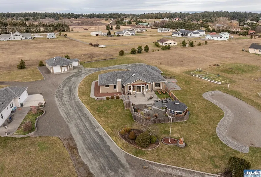 Large mountain view home on over an acre w/huge heated shop building in one of Sequim's best neighborhoods. Situated at the end of a paved roadway of beautiful estate homes, this property is a short walk to the miles of hiking trails throughout the Dungeness Recreation Area and the Dungeness Spit. New hardwood floors, a new roof, a new heat pump. Beautiful fenced in backyard area w/gorgeous water feature, beautiful Dogwood and Magnolia trees, concrete patio and Gazebo. Great room concept with cozy family room off of the kitchen, another library/living room and a formal dining room. Primary BR suite offers a beautiful chandelier, bathroom w/jetted tub, and separate shower and BR has views out to gorgeous private backyard and mountains beyond. In addition to the attached 3 car garage there is a heated 1680 SF shop building equipped w/220 power, dust collection system and a full bath. RV parking area w/power and water. Whole house speaker system, crown molding, propane F/P in living room, wet bar and formal dining room. Plum, apple and Asian pear trees. This is a beautiful mountain view property in an absolutely ideal location.
