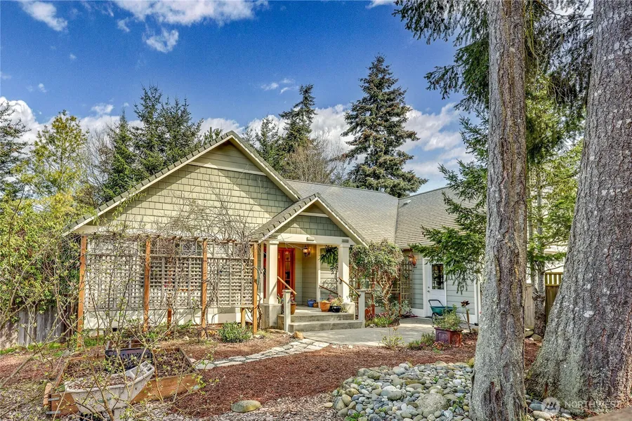 Craftsman style rambler with covered front porch, front patio, completely fenced private yard, fruit trees, large back deck with access to above ground exercise pool/spa Open kitchen to dining with engendered hardwood floors lead to living room,2 bedrooms, large main bath with soaking tub & shower, plumbing in the walls for 2nd bath in 2nd bedroom office area. Cozy sitting/mud room/ off living room with access to back yard 2 car garage with work bench and storage, new heat pump installed 2023 Minutes to Olympic National Forest !