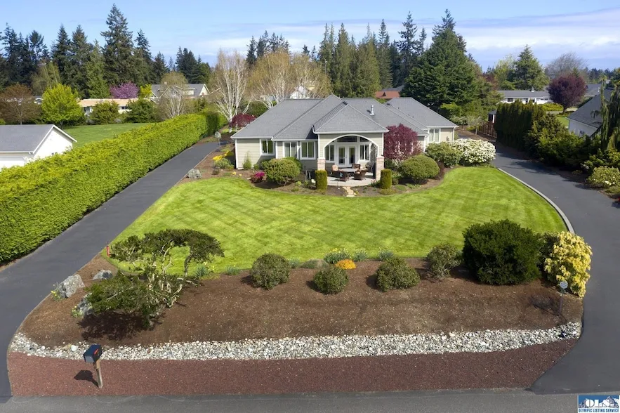 Beautiful and meticulously cared for custom mountain view home in one of Sequim's best neighborhoods. Gorgeous landscaping, privacy hedge, and a recently resurfaced wrap-around driveway frame this exquisite home of the highest quality. Primary suites on both ends of the home for peaceful nights when guests are over. Additional bedroom, office, and a 3rd full bath. Brazilian cherry floors set the tone as you enter the extraordinary great room with craftsman style columns, clerestory windows, propane fireplace, and tons of southern exposure. Large kitchen with granite counters, large island w/bar stool seating, beautiful mosaic tile backsplash, and like-new Cafe appliances including induction top, convection oven, and warming drawer. Dining is off the kitchen with views to the covered south-facing patio, colorful landscaping, and the Olympic Mountains beyond. The main Primary suite features a spa like bathroom with marble floors and counters, double sinks and separate tub and shower. Heated 3 car garage with epoxy floor, attic storage area and built in cabinets. The grounds are stunning with a small grove of beautiful birch trees, 2 apple trees, various Japanese maples, rhododendrons, azaleas, and hydrangeas providing color throughout much of the year, and all fed by underground sprinklers, plus a garden shed with shelving. This quiet, dead-end street (Suncatcher) has ten homes, and the pride of ownership is evident. Location is ideal as it is private and yet only minutes from downtown Sequim. Minimal HOA fee of $315/year includes unlimited water for the year. This home is served by a water softener and reverse osmosis system for the purest water possible. Whole house speaker system for music, central vacuum system, upgraded lighting throughout, and 36-inch counters. Rated A+ on . A very special home with beauty at every corner that has been so obviously cared for with great pride. Large deck to entertain or just relax and take in the unobstructed views of the Olympic Mountains.