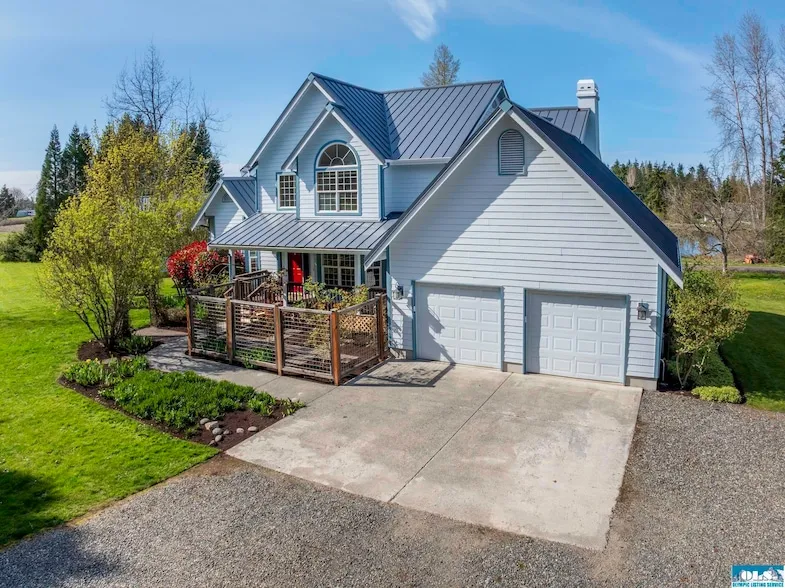 Picturesque traditional Happy Valley home overlooking a natural pond on 5+ acres in a country setting yet 5 minutes to town. Features a huge back deck for pond & wildlife viewing, a covered front porch entry surrounded by a fenced rose garden, and a 36x40 fully finished shop. Wood burning fireplace with insert in family room to keep you toasty on chilly nights. Recent additions: 50 yr metal roof, exterior paint, quartz countertops and LVP on the entire main floor. Kitchen was remodeled 2017, with a new top of the line HVAC system, basement was fully finished with library/playroom, exercise room or bonus room, and loads of storage, then the fully finished and heated shop was added soon after. Quality throughout. Fabulous neighborhood. Could be a great mini-farm or bring along your horses.