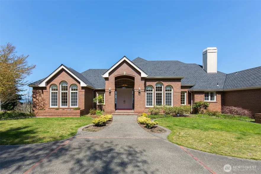 The One with THE View A hidden gem perched up high yet close to town with stunning private panoramic views across the Straits to Canada. This luxurious 2 story retreat offers main-level living & too many upgrades to list, including newer roof, kitchen appliances & flooring. Watch ships at sea from nearly every room including a unique music room with fab acoustics! All BRs boast walk-in closets. Downstairs features kitchenette (just add a range to get a 2nd full kitchen), 4 BRs & huge climate-controlled storage area. Multiple flexible living areas on both levels. Enjoy a private pickleball/sport court & a dream laundry with a small dog wash, drip-dry zone & half bath. Ideal for a personal retreat or perfect vacation rental for you!