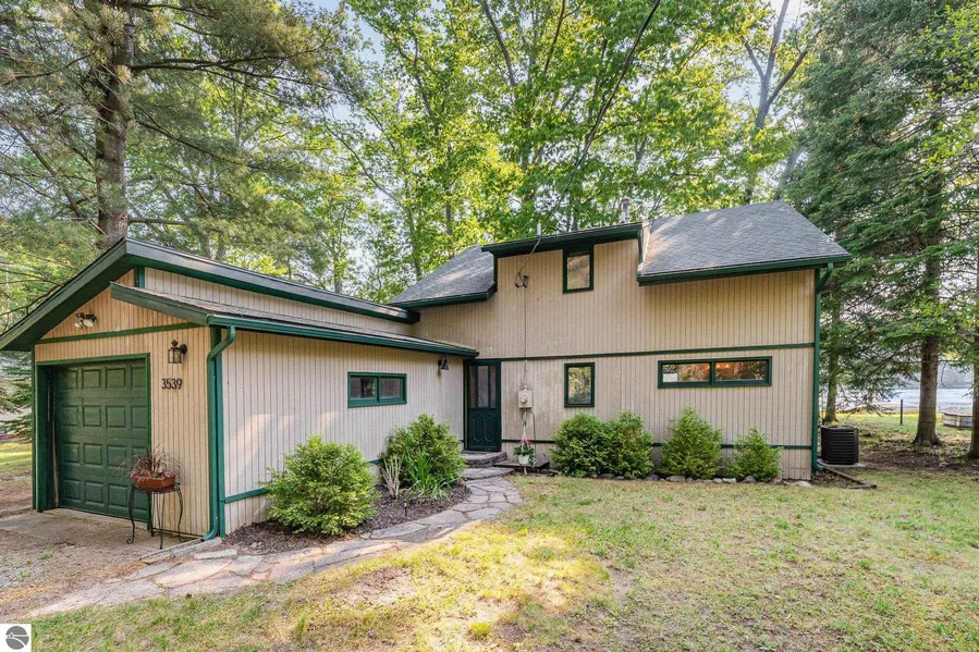 From the moment you drive up to this home you can sense the peaceful tranquility and serenity that can be all yours. Expansive double lot adds privacy and value as well as offering beautiful views of spring-fed, electric-motors-only Lake Taho with nesting loons (loons love clean lakes)! Sandy shore play and swim area is made more desirable as you watch your family enjoy the sun and fun of lakefront living while you relax in your totally cool, well built, fully screened-in and very attractive Octagon-shaped Gazebo. Curved stone walkways add comfort and charm as you walk to home, shed, Gazebo and/or lake. Architecturally unique home is complimented by towering oak trees, evergreen trees and landscaping that frames the property in natural beauty. Once inside you immediately sense the artistic beauty everywhere, enhanced by design, texture, color and fun functional floor plan. Open kitchen/living room with vaulted ceilings, a focus-point natural fireplace with wood-burning insert that can heat the entire home, and a slate-tile-over-concrete hearth, diagonally placed solid pine wood wall surround, skylights and a wall of wood trimmed windows overlooking the lake. Angled stairway leads to upper floor with 2 bedrooms, second full bath, Clerestory windows and wood-railed open hallway overlooking living room, kitchen and lake. Lake Taho Subdivision is surrounded by hundreds of acres of State land with access just down the road! Serenity, Tranquility, Fun and Fishing - Have Friends and Family Come Together at This Truly Special Get-Away!! This is truly a high priority home to own.