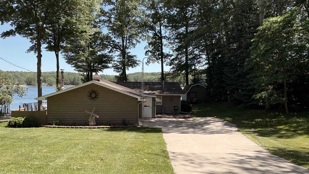 Enjoy 105 feet of private waterfront with this cozy 2-bed, 1-bath home, plus an extra bath in the 30x40 pole barn across the road, that has an underground sprinkler system. This property has 2 full lots, Nearly an acre of land with plenty of storage‹”including a second garage/workshop and built-in safe. NEW kitchen, new remote blinds, partially furnished, and loaded with character‹”from the 3-season room with sunset views to a fireplace and wood stove for those chilly nights. Don't worry about the electric going out, seller is leaving the Generator for you. Easy walk to the water with NO STAIRS to get to it. Whether it's relaxing or entertaining, this place feels like home. Buyer's agents must accompany all showings and inspections when buyers are present.