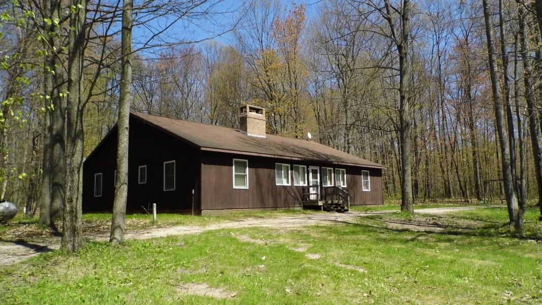 400 wooded acres with 2300+ sq ft 4 bedroom, 4 bath home. Home is set up perfectly for your next hunting camp. Lots of room for all the folks, plenty of bedrooms and baths. 3 sets of bunk beds in each room. Double sided fireplace to set around in the evening and swap stories of the big bucks that wandered by. Nice kitchen, with a big ole gas stove to keep the hunters fed. Great trail system to get you around this big acreage. Pretty much drive the truck or ATV about anywhere to get to one of the 14 blinds, and 4 food plots found here. Lots of places for the whole crew to hunt. Woods are a combination of poplar, maple, some oak, and a few big pines up front. Property was select cut 25+ years ago and has now grown into a wildlife wonderland. Deer, turkey, grouse, and woodcock roam this parcel. I also hear there's a pretty decent morel mushroom population to be had here too. Only about 5 mi...