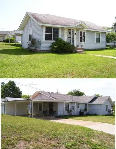 WANNA BE A LANDLORD? A GREAT 'FIRST' RENT HOUSE! 3-BR, 1-BA, gray vinyl-sided home with white trim on neat, corner lot at 1301 Walnut --- just 1 Block West of Second Baptist Church. Covered entry, OVERSIZED SINGLE CARPORT, plus an adjoining storage/workshop combination (12' x 15') on slab. Approx. 1,160 SQ. FT. HOME with NEW 'LENNOX' CENTRAL HEAT & AIR UNIT! Large living room, an eat-in kitchen with attractive pine cabinetry, NEWER RANGE, a 'side by side' refrigerator, & stainless steel double sink. Separate laundry area, too! Lots of storm windows, storm doors, NEWER SHINGLES, & more! Only $56,500.! Subject is presently rented to a wonderful tenant! Shown by appointment only, please.
